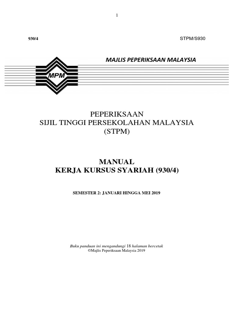 Related : Mpm Kerja Kursus 2019 : Manual pelaksanaan kerja kursus pengajian am stpm 2019 penyediaan dan penilaian kerja kursus ini mestilah dilaksanakan pada semester 2 mengikut tempoh yang ditetapkan oleh mpm..