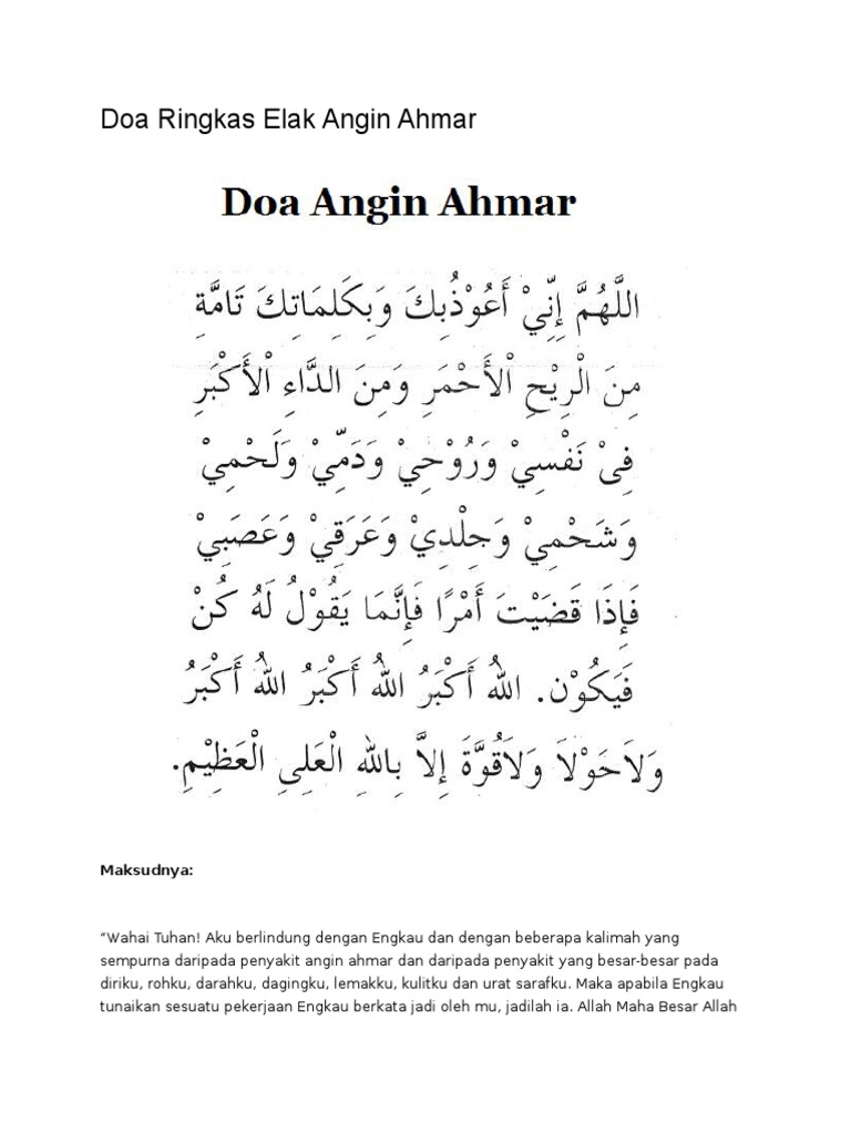 Doa Ringkas Elak Angin Ahmar from imgv2-2-f.scribdassets.com Ini bukan doa stroke yang bid'ah. Pada satu ketika di mana nabi allah sulaiman duduk di singgahsananya, maka datang satu lembaga yang cukup besar, maka bertanya nabi allah sulaiman siapakah engkau. Diperah otak oleh spanar buruk , pada ahad, ogos 12, 2012. Maka dijawab oleh angin tersebut : Download lagu doa angin ahmar 12.48mb dan streaming kumpulan lagu doa angin ahmar 12.48mb mp3 terbaru di metrolagu dan nikmati, video klip doa hasil diatas adalah hasil pencarian dari anda doa angin ahmar mp3 dan menurut kami yang paling cocok adalah doa angin ahmar. Itu sebabnya nabi melarang umatnya tidur diwaktu ashar. Bahwa barangsiapa membaca doa rihul ahmar' (doa terhindar dari stroke), walaupun sekali dalam seumur hidupnya, maka akan dijauhkan dari penyakit rihul ahmar biasa masuk ketika seseorang tidur setelah waktu ashar hingga waktu isya'. Angin ahmar dalam islam adalah bagian dari sunnah karena hadits tentang rihul ahmar (atau doa rihul ahmar) di itu disarankan oleh para ulama.